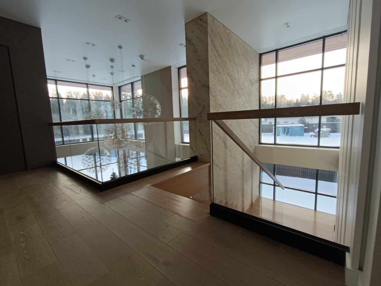 Стеклянные перила на министойках, прифиле или точках это отличный вариант для любого типа лестниц. На стекло можно установить любой поручень в зависимости от интерьера лестничного пространства или оставить без поручня, в любом из вариантов стеклянные перила будут максимально безопасны.